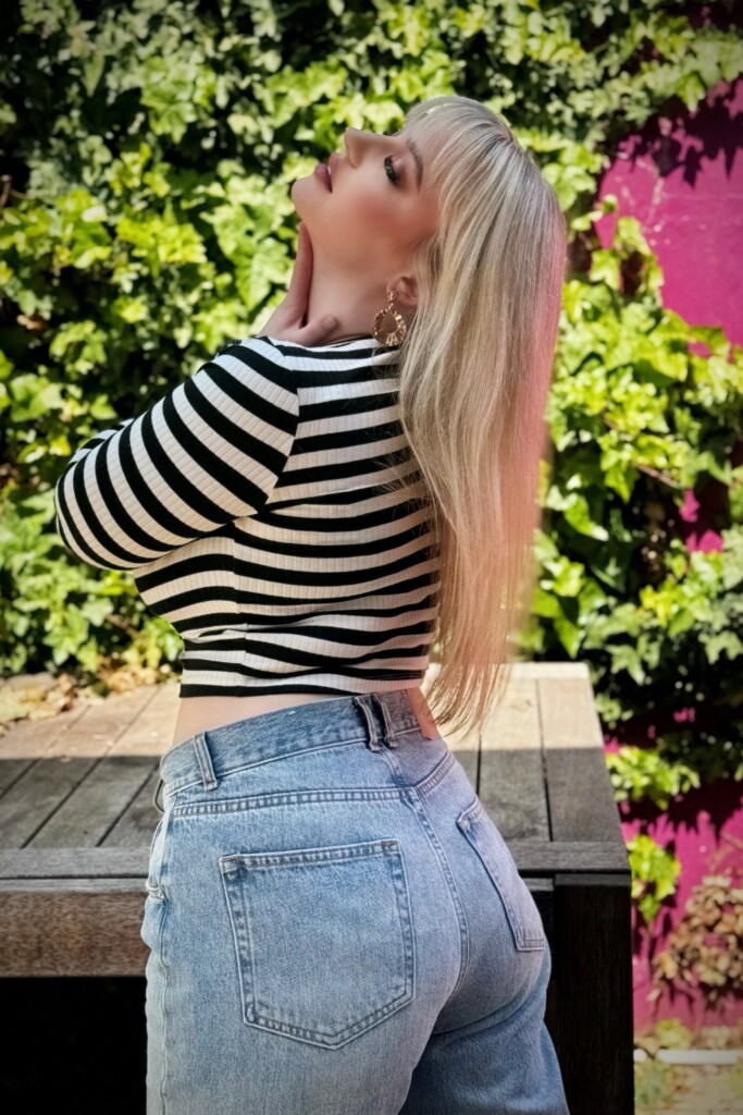 I am very petite, standing at a deceptive height of 5’2″. My bright green eyes are always a standout and my long blonde hair and extreme hourglass curves are perfectly complimentary to my modern-day Brigitte Bardot vibe.